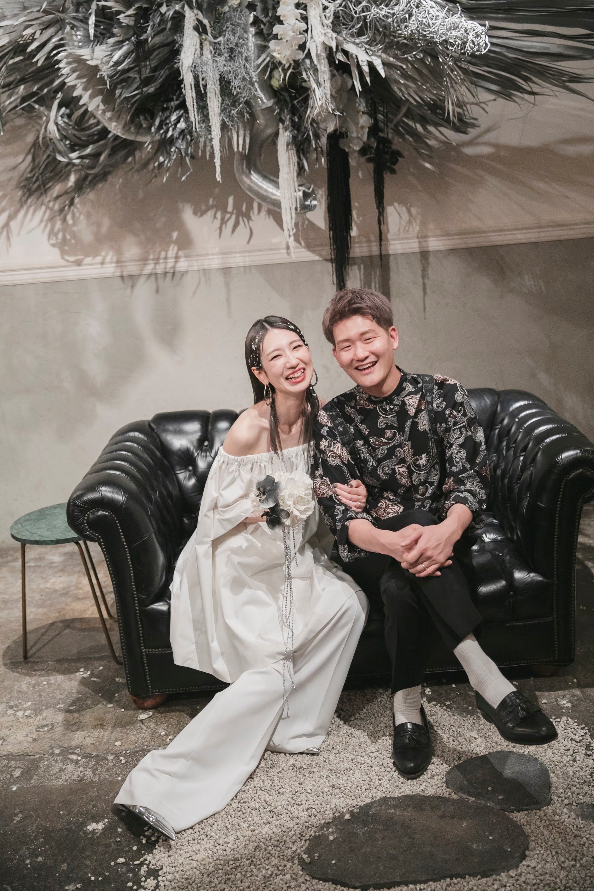 今回オーダーを頂いた花嫁様は「weddingに自由を」をコンセプトにしたウェディングサーカスにてフォトと衣装を担当されており、自社で結婚式を挙げられました。ウェディングサーカスさんはテンプレートという概念が無く、一組一組のお客様に対して担当プランナーが1から二人に合った企画書をつくりオーダーメイドの結婚式をつくられています。今回の花嫁様のテーマは「monotone モノトーン」との事でした。monotone のtone(トーン)部分を分解し「two + one」という意味を見出し、家族やゲスト、その他の式を構成する要素が新郎新婦と一つに成っていく空間をデザインに落とし込んでいったそうです。その中でブーケも勿論そのデザインコンセプトを踏襲しており”レイヤードブーケ”と名付け、2つのブーケを重ね合わせて一つのブーケとしても使用できる3wayのカタチを採用されたそうです。